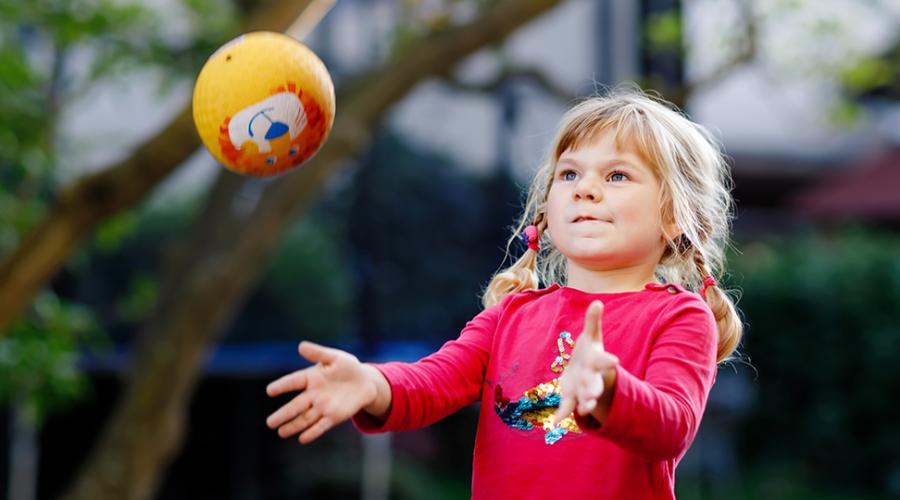 Barn med bra grundrörelser har lättare att delta i gemenskapen. Här ger Maria Larsson förslag på lekar som tränar den motoriska grundrörelsen kasta.